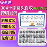 460pcs厂家直销跨境盒装螺丝304不锈钢十字圆头自攻螺丝套装