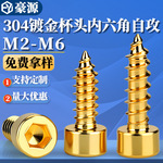 镀钛金304不锈钢杯头内六角自攻螺丝金色内六角木螺丝钉M2M2.5-M6
