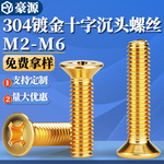 金色螺丝仿金304不锈钢十字沉头螺丝镀钛金平头十字加长螺钉M2-M6