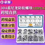 125pcs跨境货源盒装螺母套装不锈钢蓝尼防松螺母六角锁紧螺母套装